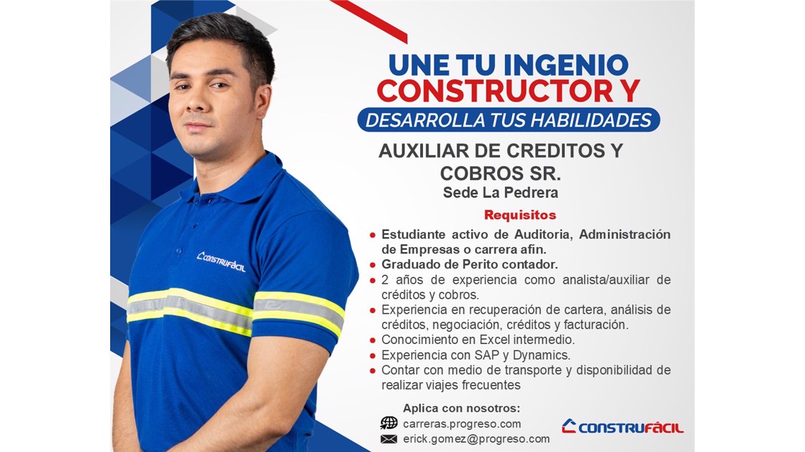 Auxiliar de Créditos y Cobros / Construfácil - La Pedrera Zona 6 Ciudad de Guatemala