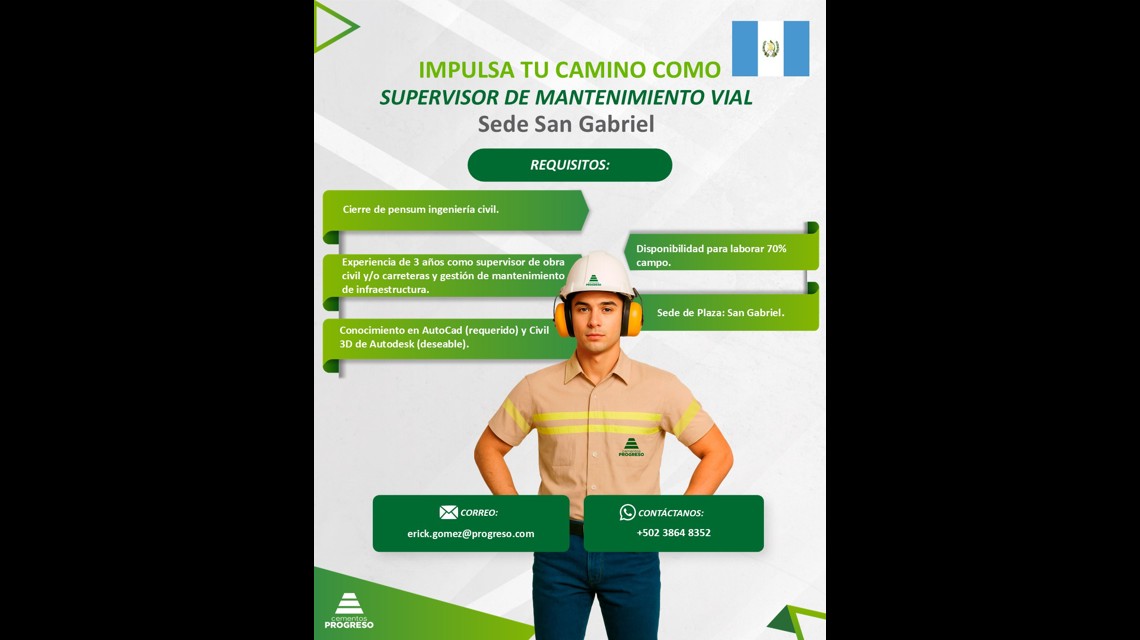Supervisor de Mantenimiento Vial / Cementos Progreso / San Gabriel